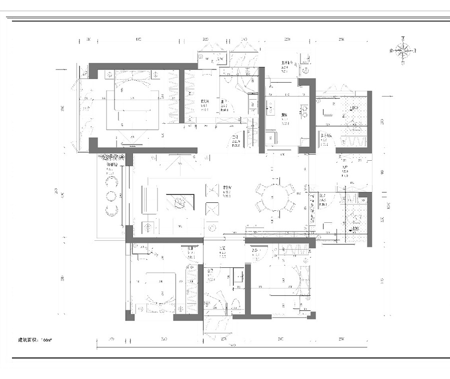 原始戶型公共區(qū)域散亂零碎,通過(guò)分析屋主的空間功能需求及用途之后,進(jìn)行重新解構(gòu)改造。首先將兩處面積較大的生活陽(yáng)臺(tái)納入公共空間,在擴(kuò)大客餐廳面積后,又獨(dú)立出一間多功能空間。整合后的戶型變得方正、整齊,視野開(kāi)闊并富有多元的互動(dòng)性。其次為空間的基調(diào)注入經(jīng)典的黑白灰,鮮明的對(duì)比與自然的視感過(guò)渡,在層次漸進(jìn)中渲染出簡(jiǎn)約、現(xiàn)代的精奢之感。最后施以木色點(diǎn)綴,與空間互相融合,增添柔和溫度